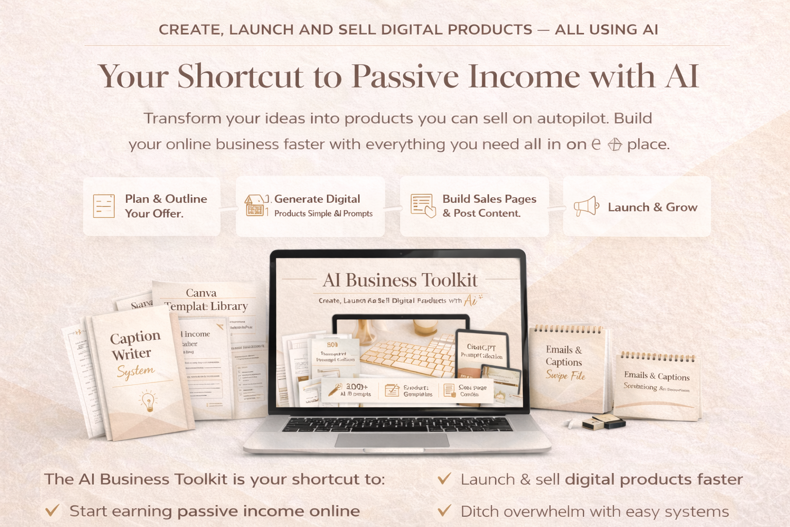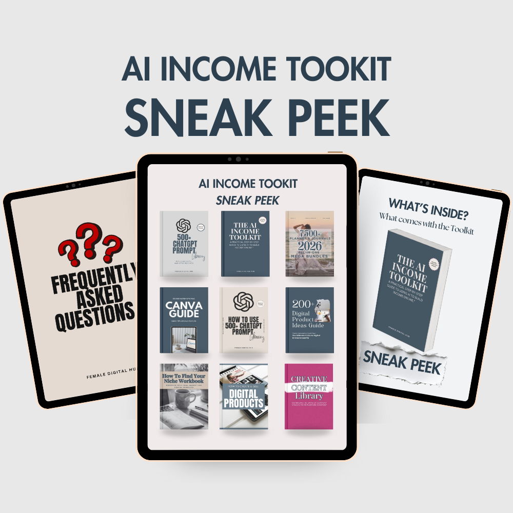 Are you ready to turn your knowledge, skills, or unique ideas into thriving digital products? The AI Income Toolkit provides everything you need to get started. Packed with comprehensive guides, customizable templates, smart prompts, and expert resources, this toolkit empowers you to create and monetize digital products seamlessly.