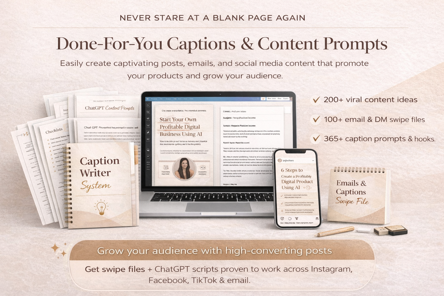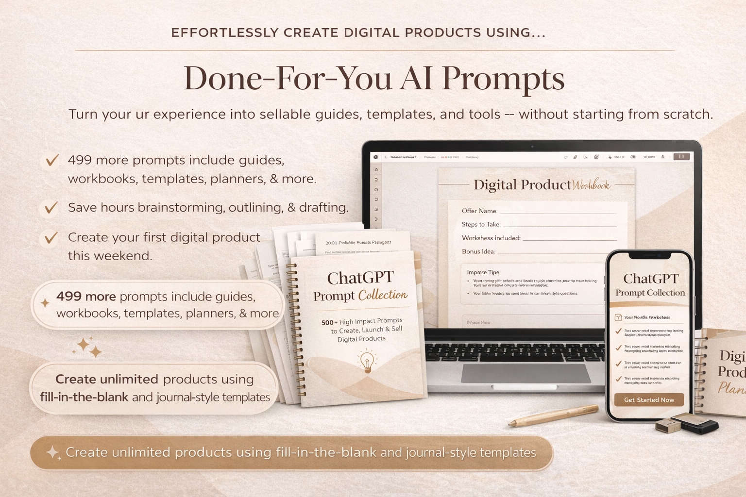 – **AI-enhanced prompts**: Generate ideas, refine content, and optimize your digital products with the help of cutting-edge AI prompts. These smart tools are perfect for brainstorming and scaling effectively.