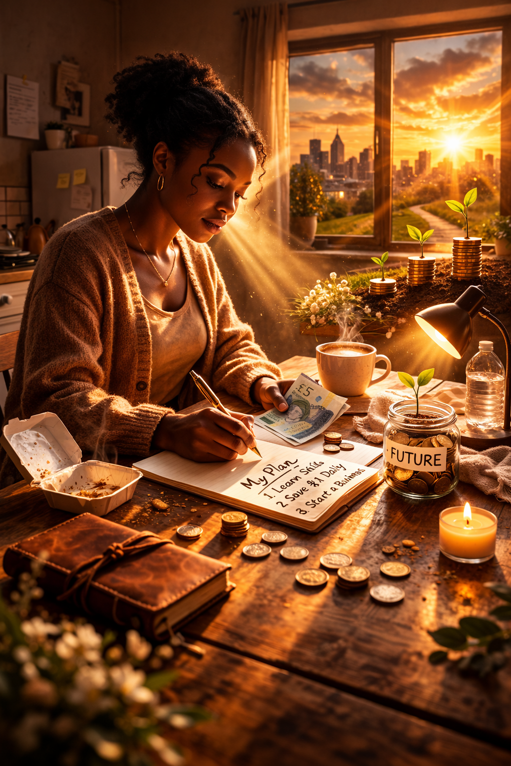 She bought the notebook. That night, she drank water and slept hungry. But for the first time in years, she slept with intention.